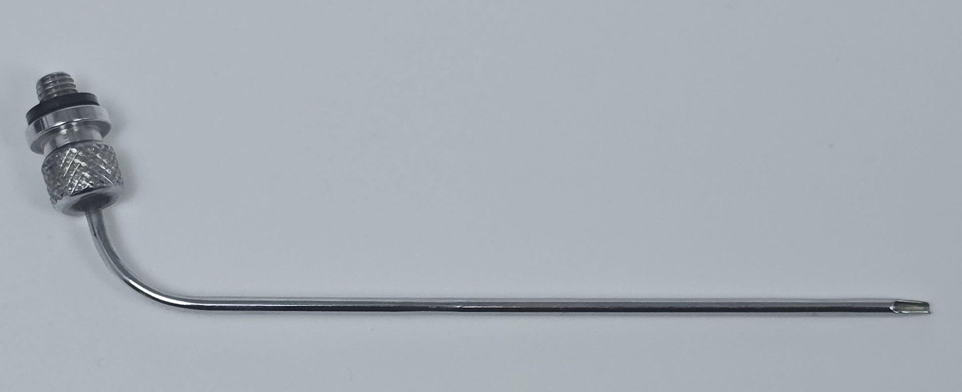 This arterial tube features a 3/32" outer diameter and a 4" working length. It is constructed from durable chrome material, ensuring longevity and reliability in mortuary procedures. The tube is equipped with a threaded hub for secure attachment and includes an indicator tie for ease of use. Ideal for arterial embalming applications.