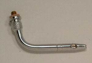 This arterial tube features a 1/4 inch outer diameter and a 2-inch working length. It is designed with a chrome-plated finish and includes a threaded hub for secure attachment. The slotted vent allows for efficient fluid flow during embalming procedures.