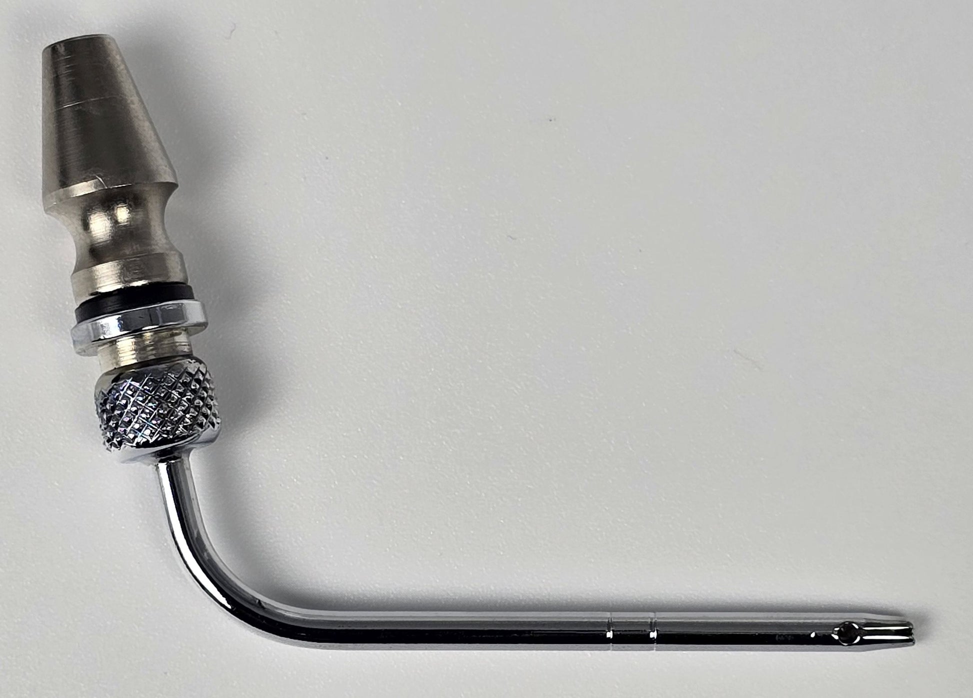 This arterial tube features a 1/8" outer diameter and a 2" working length. It is designed with a chrome-plated slip hub and includes a slotted vent for improved fluid flow. Ideal for use in embalming procedures, this tube ensures reliable performance and compatibility with standard equipment.